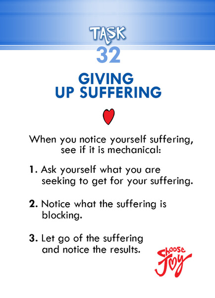 The task involves noticing the pay-off we seek for our suffering, and then seeking to understand the positive things that the suffering blocks.